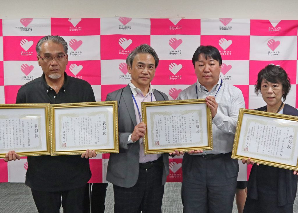 新会社としては初めての社内表彰制度が行われ、社長より賞状と副賞が授与されました。第一回は有料老人ホーム部門からは ヒューマンサポート守谷、ヒューマンサポート東松山、ヒューマンサポート春日部の3施設、デイサービス部門からはヒューマンサポート春日部が表彰されました。今回は、会社業績への貢献や業務改善への取組みなどが表彰理由となりました。今後もこのような表彰制度を通じて、組織力を高め、従業員が活き活きと働ける環境づくりを後押ししていきます。
