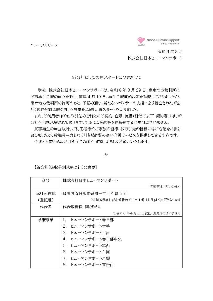 2024年8月16日 新会社としての再スタートにつきまして