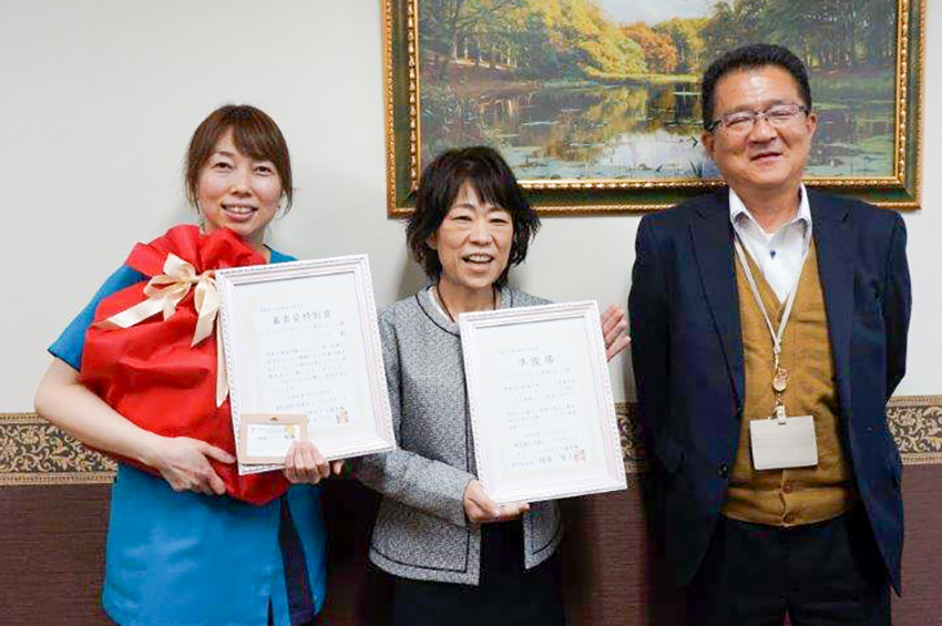 🥈 準優勝 ヒューマンサポート東松山2階 🏅 審査員特別賞 東松山2階 介護職員 Hさん (写真左) |
