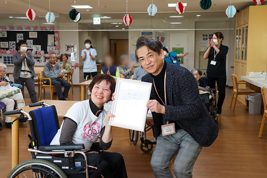 また、個人賞も設けられ、特に素晴らしい演技を見せてくださったご入居者様1名、演技を盛り上げてくれた職員4名が選出されました。