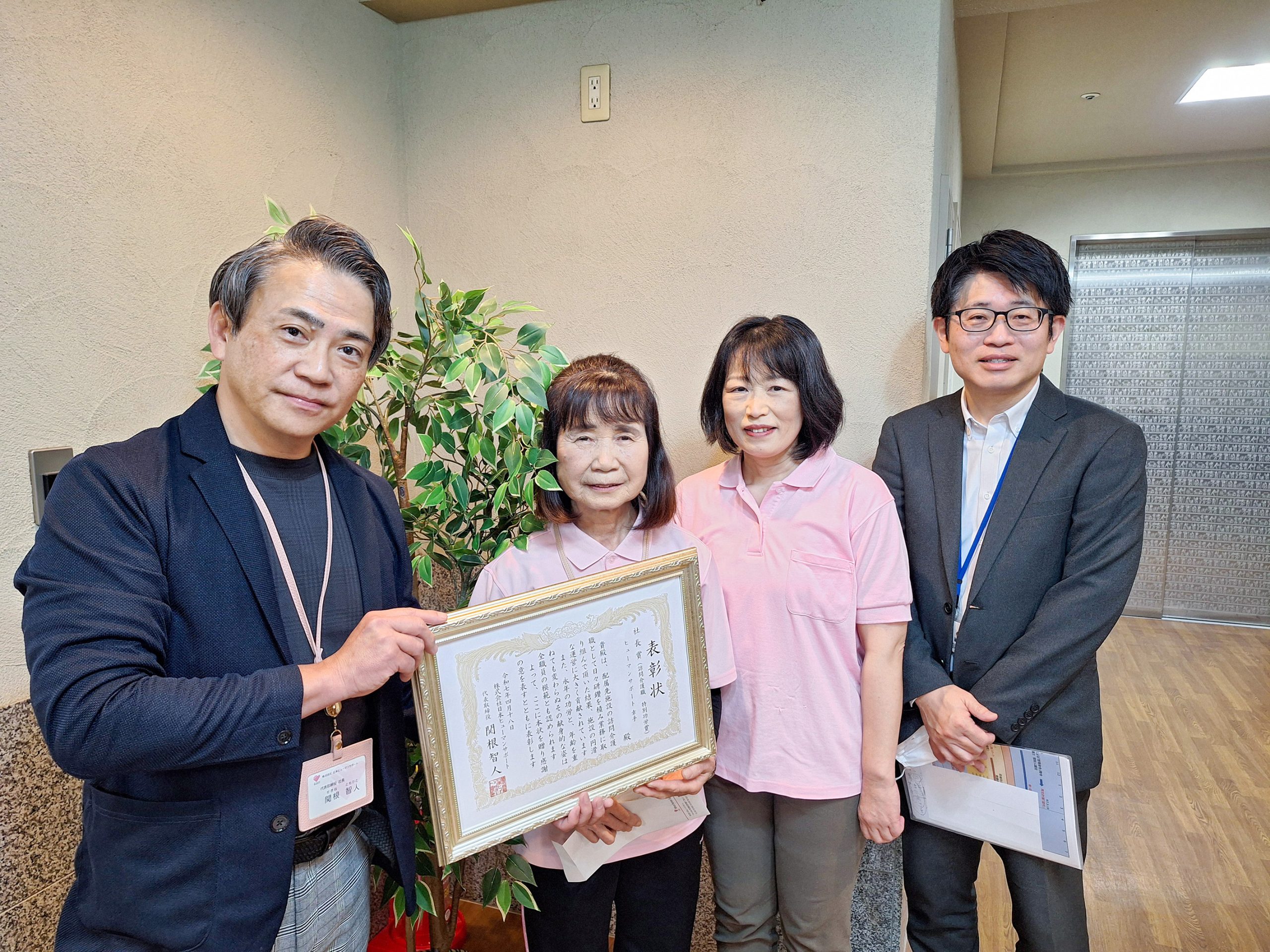 2025年4月、社員表彰制度に基づき、施設で活躍する職員4名が表彰されました。