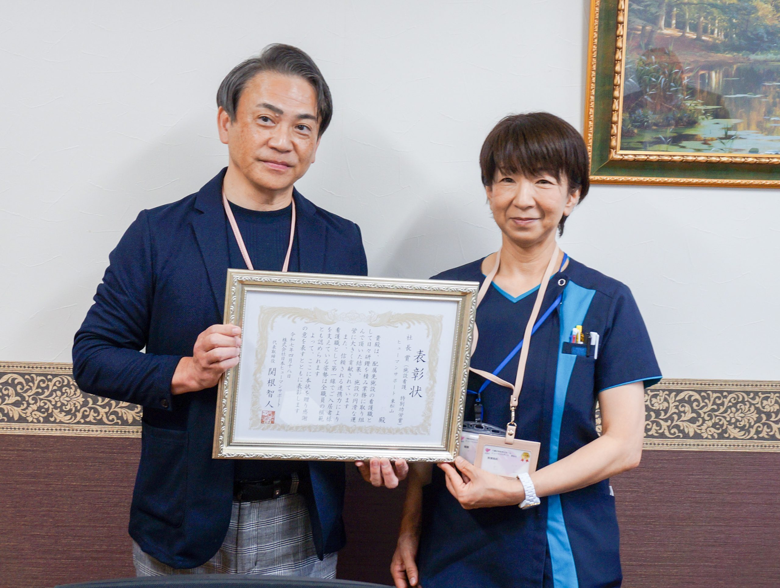 受賞理由: 開設当初から17年勤務。年齢を感じさせない献身的な姿勢と利用者想いの対応などが評価されました。