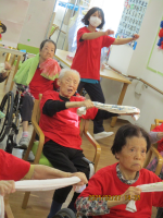 ヒューマンサポート東松山に今年も待ちに待った🏁✨チェアエクササイズ選手権✨🏁の季節がやってまいりました。昨年は🏆優勝🏆を勝ち取っており今年もご入居者様は益々🎶やる気満々🎶です。赤・緑・黄色と👕シャ...