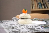 2月のハンドメイド教室では、和柄のタペストリーを作りました。まずは、水色と緑の台紙のどちらかを選んでいただきました。土台となる発泡スチロールに台紙を貼り合わせたら、花びら布と葉っぱ布を竹棒で差し込ん...