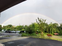 ゲリラ豪雨となった夕方。少しは落ち着いたかな?と、外へ様子を見に出たら…きれいな虹が見えました~✨夕立が多くなるこの時期。皆様、外出される際は、お気を付けてお出かけくださいませ(*´ω`*)☂