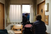 日が落ちる頃。非常扉側の窓から、きれいな夕日と富士山が見えたので、皆様で見に行きました。「きれいだね・・・✨」寒さも忘れて⁉しばらく眺めていらっしゃいました(´ω`*)