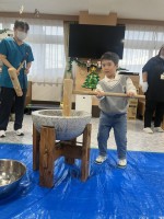 ちびっこちゃんも参加しました!!もう皆様の目線はちびっこちゃん達に釘付け!!頑張りました!!さぁ~皆様もちびっ子ちゃん達に負けずについていきますよ!!職員と大笑い大賑わいなお餅つき大会となりました...