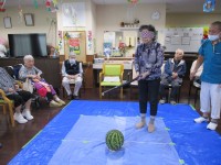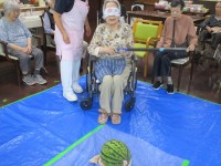 4階・すいか割りご入居者様は今年もすいか割りの日を楽しみにしていらっしゃいました😊「右だよ」「左だよ」「もう少し前だよ」皆様のお声掛けですいか割りをしました🍉見事にすいかを割ることができました👌皆様...
