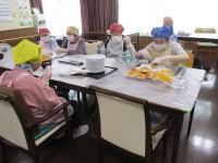 4階・おやつ作り~マリトッツォ作るのも楽しみなおやつの時間❤️今月はマリトッツォです!ロールパンに切り込みを入れる係、その中に生クリームを絞る係、最後に果物をトッピングする係に分かれて作業しました👌「...