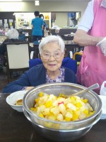 2階・おやつ作り~プリンアラモードまずは黄桃、みかん、チェリーを準備してプリンをカップから取り出し器に入れました!生クリームとフルーツを添えたらプリンアラモードのできあがり✨「フルーツたっぷり乗せち...