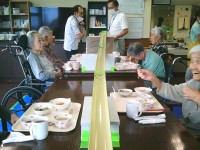 3階・お茶会~かき氷作り海の日にご入居者様と一緒に氷を削って宇治金時のかき氷を作りました✨昔氷を削った事があるという方も初めて削ったという方も「お祭りみたいで楽しかった」と喜んで頂けました☺️今回は抹...