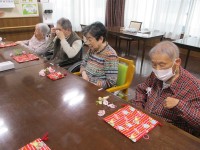 4階・花工芸ご入居者様が毎月楽しみにされている花工芸🌸今日は何をつくるのかな?同じ材料でも巾着の結び方やお花の入れ方に個性が出ていました!来月も楽しみです🌹