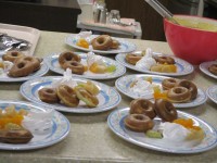 4階・おやつ作り~ドーナツドーナツメーカーを使って焼きドーナツを作りましたご入居者様には果物のカットと盛り付けをして頂きました!ドーナツは甘さ控えめです🍩生クリームや果物🍑🍇🍊と一緒にどうぞ✨「何個...