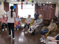 4階・風船バレー日常レクをご紹介♪ご入居者の皆様で輪になって座り風船バレーをしました😊風船を下に落とさないようにぽーん!ぽーん!力加減が難しいですが慣れている方も多くお上手でした🎈✨毎日いろいろなレ...