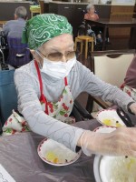3階・おやつ作り~クリームあんみつ今月もご入居者様に楽しみながらおやつを作って頂きました☺️寒天とフルーツを器に分けてアイスとあんをのせたらできあがり✨皆様エプロン姿がお似合いです❤️「さくらんぼ久しぶ...