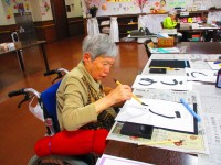 2階 書道教室を行いました。(❁´◡`❁)皆様 真剣な表情で書道を書いておりました。書道を書いている姿はとても綺麗で、昔を思い出したとお話して頂きました。