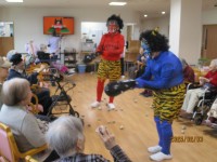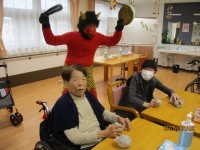 特定3階の豆まきのご様子をお届けいたします。3階には赤鬼さん&青鬼さんがダブルで登場しました👹👹鬼の迫力にみなさまビックリ!😳……と思いきや、正体が分かったのか笑顔のご入居者様も多く見られました♩ご入...