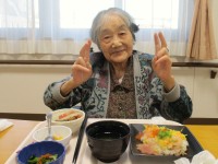 本日の昼食は…彩りも美しいちらし寿司でした🌸季節を感じていただけるメニューで、食べる楽しさや美味しさだけでなく季節の訪れや変化もお楽しみいただいております🎍