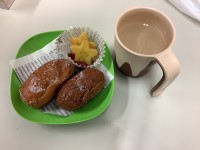 フライヤーを使用し揚げパンを作りました🥐揚げたて、ふわふわの揚げパンはペロッと食べられます!『とっても美味しいよ~!』『ポテトも美味しそう!』🍟次は何を揚げましょうか?お楽しみに!