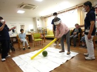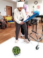 こちらは2Fのすいか割大会の様子です2Fはプラスチックのバットを使用おっと・・・向きが・・・もっとこっちこっちー!「どうだっっ!」いい音がしたものの床でしたねー💦なかなか難しい・・・よいしょーっ!な...