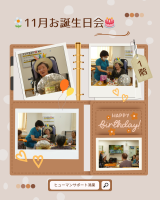 ブログアップが遅くなりましたが先月の11月誕生日会の様子です🎉💛11月は1階で1名と3階で2名の方がいらっしゃいました✨ハッピーバースデイの歌を歌い、プレゼントをお渡ししました🎁いつまでもお元気で笑顔でい...