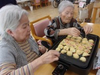 こちら1階フロアでは【🐙たこ焼き】クッキングのレクとなりました。具材のカット🔪はじめ、たこ焼き器の焼き加減🔥まで皆様に協力していただきどんどん焼きあがっていきます。(*^-^*)くるくる回して形よく ◉...