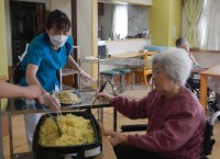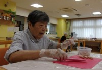 餃子の皮を使った、ミニピザ作りを2Fのお客様が取り組んで下さいました。餃子の皮に具材を乗せて頂いています。何の具材を乗せようか・・・お好みの具材を選らんで乗せて頂いています。具材を乗せ終わったら、ホ...