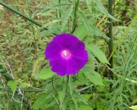 施設の花壇に、昨年植えていた朝顔が顔を出していました。 朝顔だけに、朝の9時ごろに撮影しました。午後に入ると花は 閉じています。