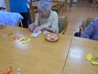 今月の花工芸🌸は秋らしいお花の飾りを作りますまずは・・・靴下を丸めていきお花を挿していきます最後にハロウィンの紙皿に乗せて完成です(^^♪皆様の素晴らしい作品が出来上がりました(#^^#)
