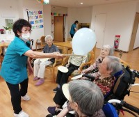 特定3Fでは風船🎈バレーが始まりました。(=゚ω゚)ノ皆様うちわを使って跳ね返します¦(;・∀・)何時自分のところに🎈が来ても打ち返せるように集中されていましたヽ(^o^)丿とても楽しそうで笑顔も見られ、ほっこりしま...