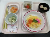 本日の昼食は、ひなまつり🎎ということで、『ちらし寿司、炊合せ、ブロッコリーとえび🦐のタルタルサラダ🥗、いちご🍓ゼリー、清まし汁』です。色鮮やかでとっても美味しそうです。(*^-^*)皆さん黙々と召し上がっ...