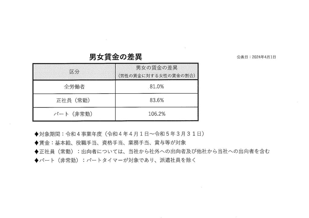 行動計画・男女賃金の差異